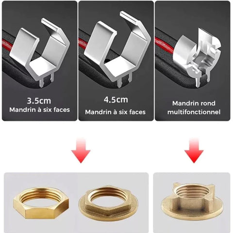 Plašs pielietojums. Nebojā dekoratīvas caurules un uzgriežņus, piemēram, apzeltītus vai vara.